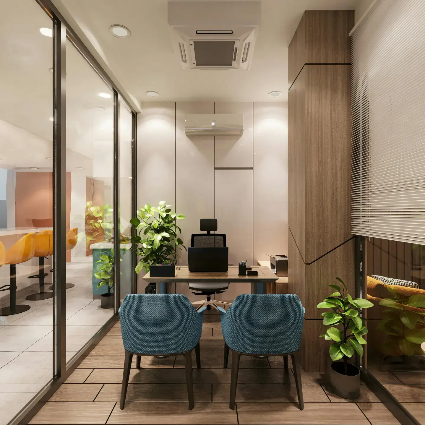 Fully enclosed offices offering privacy and security for individuals or teams.